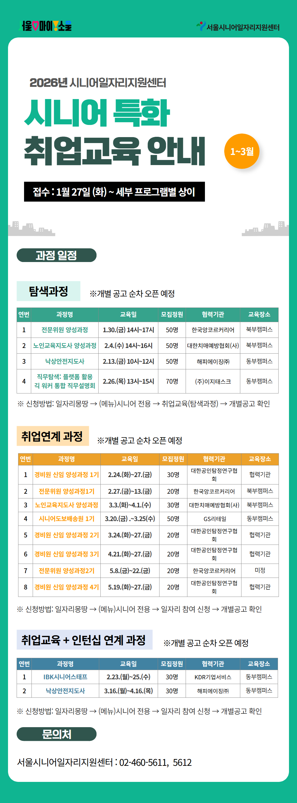 [일자리정보몽땅]★시니어일자리지원센터★ 2026 시니어 특화 취업교육 안내 (1분기)