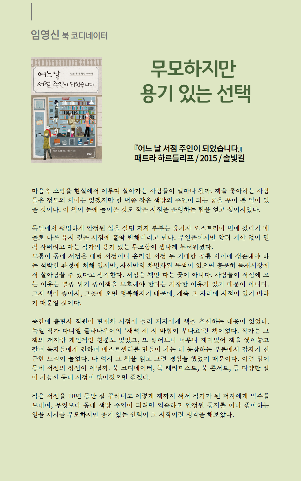 서가의 책에 대해 궁금한신 점은 언제든 북 코디네이터에게 문의하세요.