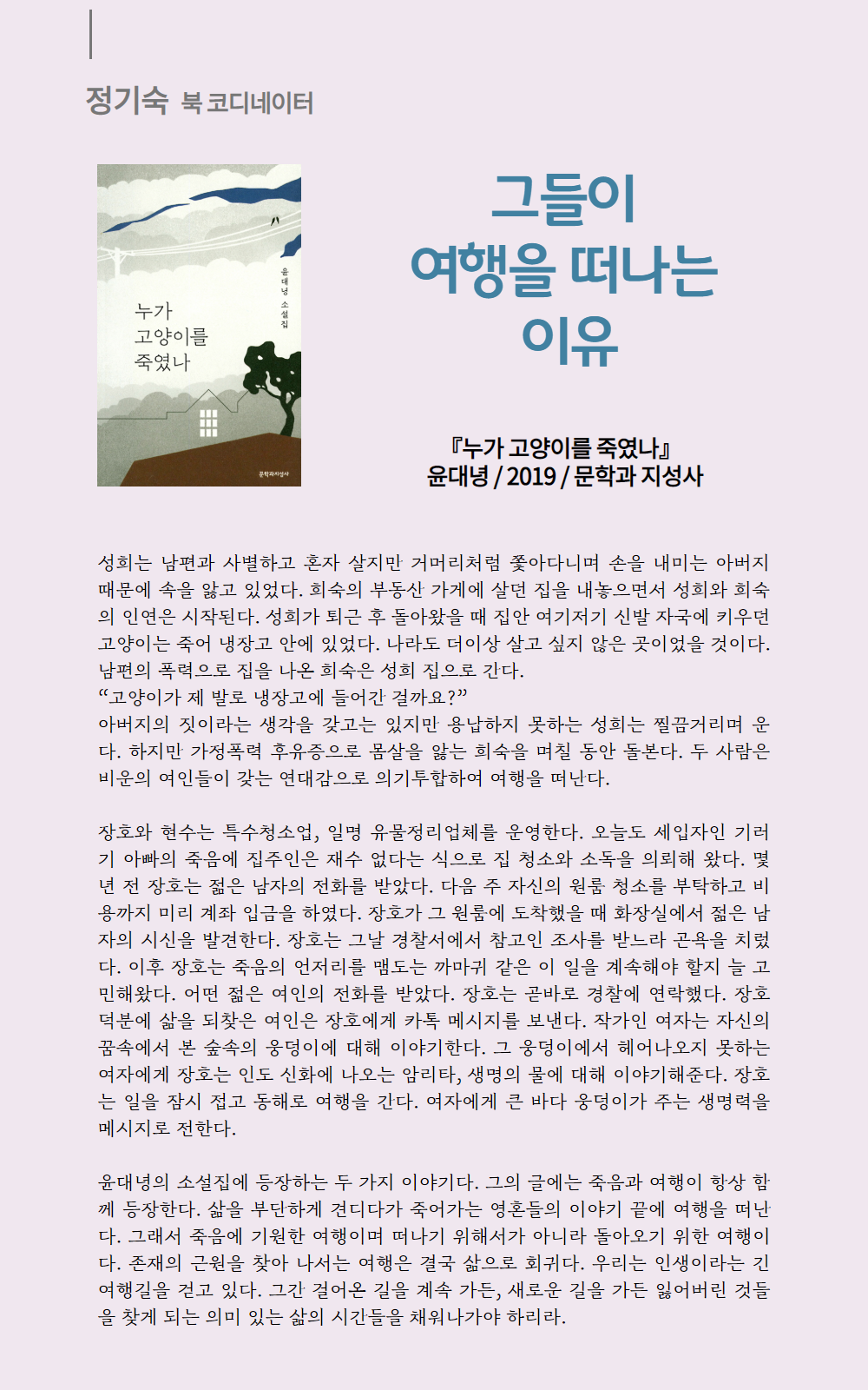 * 서대문50플러스센터 2020사회공헌활동 참여자들로 이루어진 북 코디네이터들이 매월 2회씩 센터 내 공유서가 책들을 추천합니다.