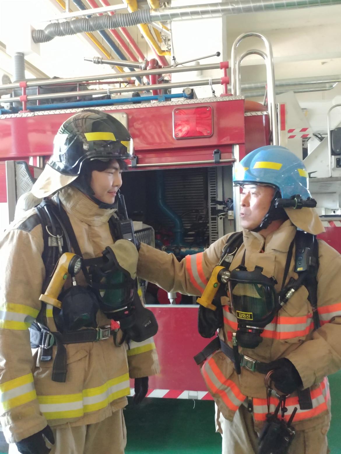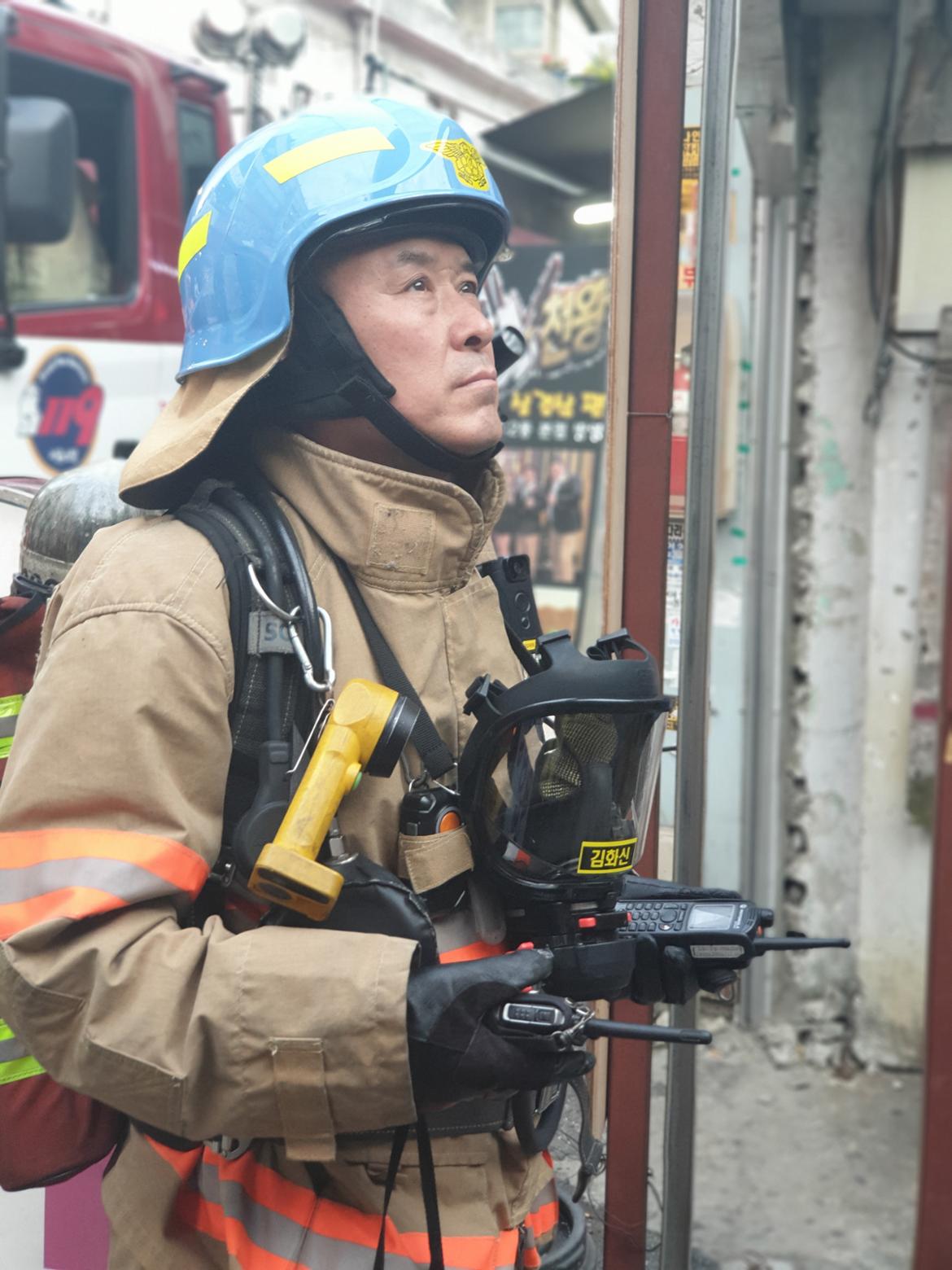 20분쯤 지났을까. 주황색 119 활동복에 준수한 외모의 중년 소방관이 나타났다. 구로소방서 현장대응단 지휘 1팀 진압대장이다. 계급은 소방위. 산전수전 다 겪은 베터랑 소방관의 연륜이 느껴진다. 아무 일 없이 등장한 그가 고마웠고, 반가웠다.
