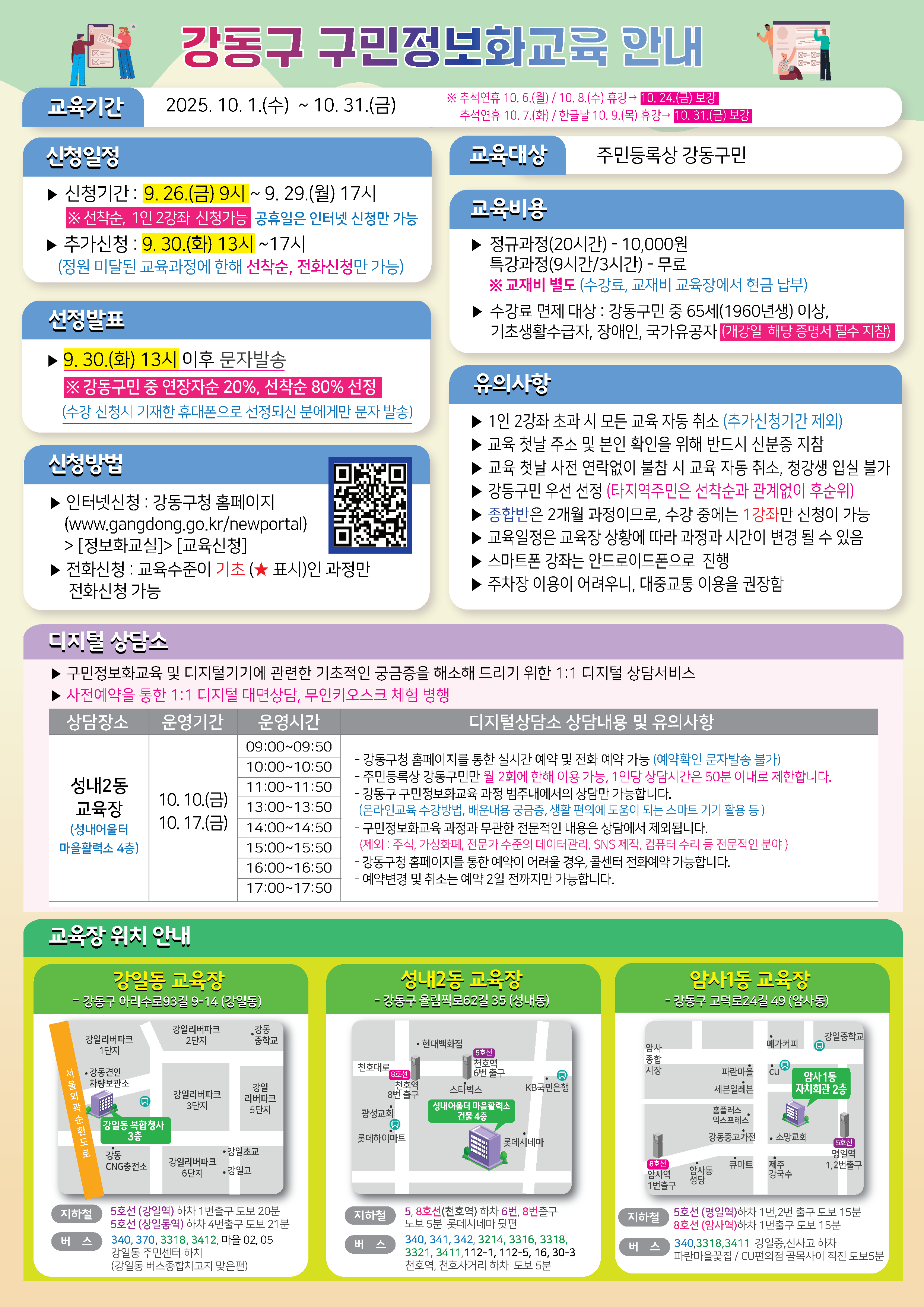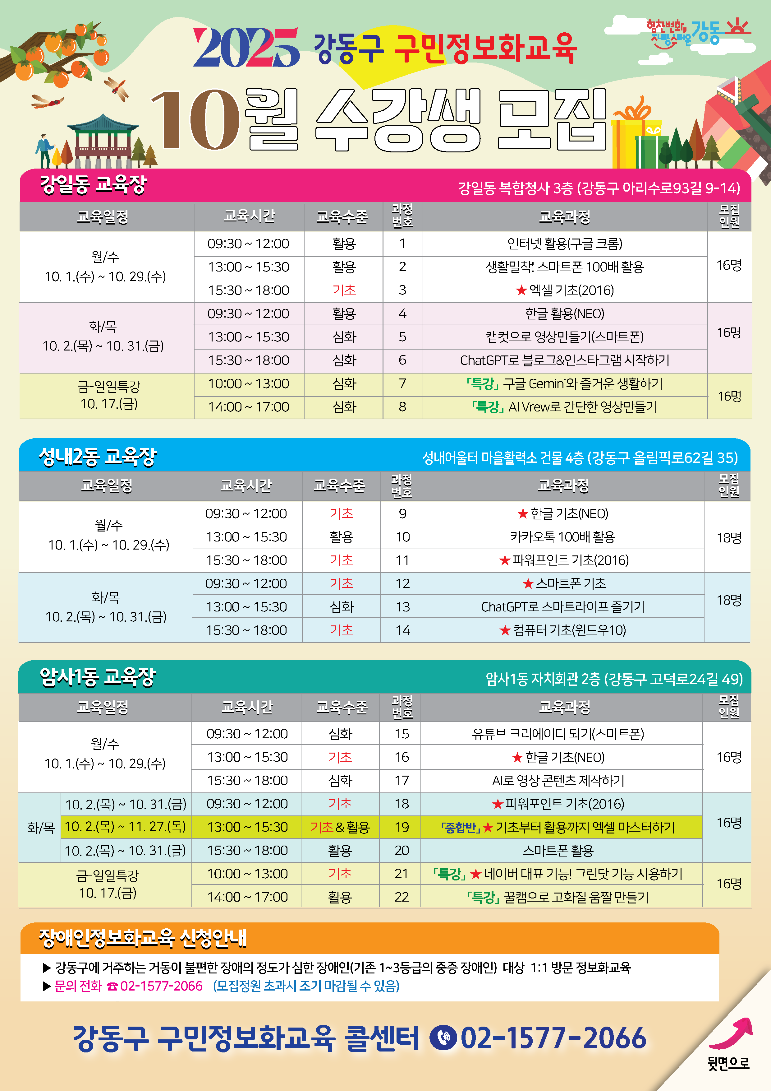 [강동구 구민정보화교육] 2025년 10월 구민정보화교육 안내