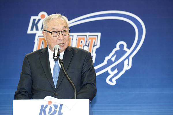 ▲2015년 10월 26일 잠실학생체육관에서 열린 ‘2015 KBL 국내신인선수 드래프트’ 때 인사말을 하는 김영기 총재.