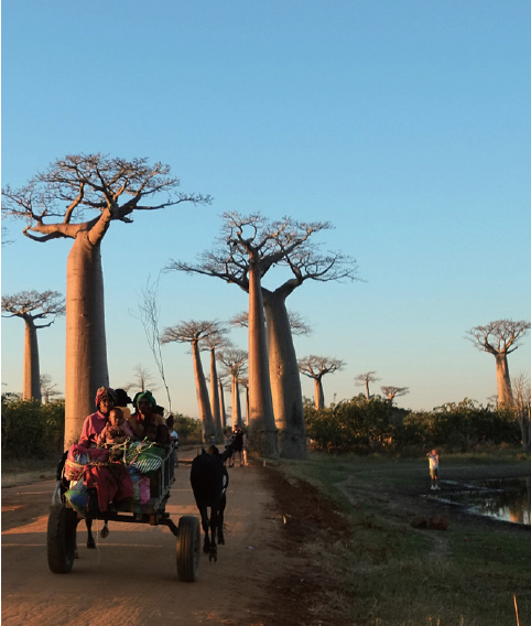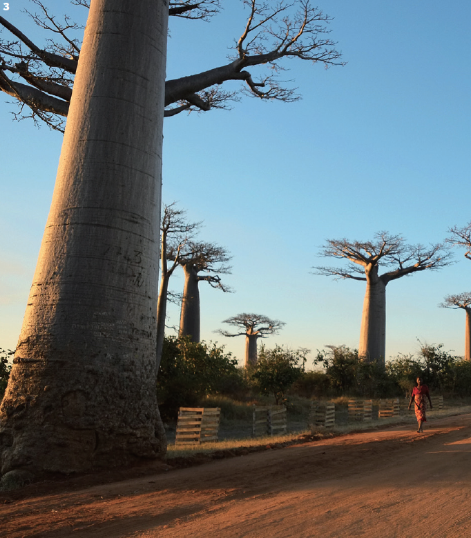 해안가를 벗어나 바오바브 애비뉴로 들어서자 마치 영화의 예고편처럼 드문드문 바오바브나무들이 눈에 들어오기 시작한다. 마침내 눈앞에 짠하고 나타난 바오바브나무 군락지! 그것은 목이 꺾어질 듯 올려다봐도 끝이 보이지 않을 만큼 높고도 장대했다. 1년에 고작 3mm씩 자라는 나무가 저만큼의 크기가 되기까지 얼마나 오랜 세월을 살아온 걸까. 정말이지 바오바브나무 하나만 보고 간다 해도 마다가스카르 여행은 충분할 것 같다.
