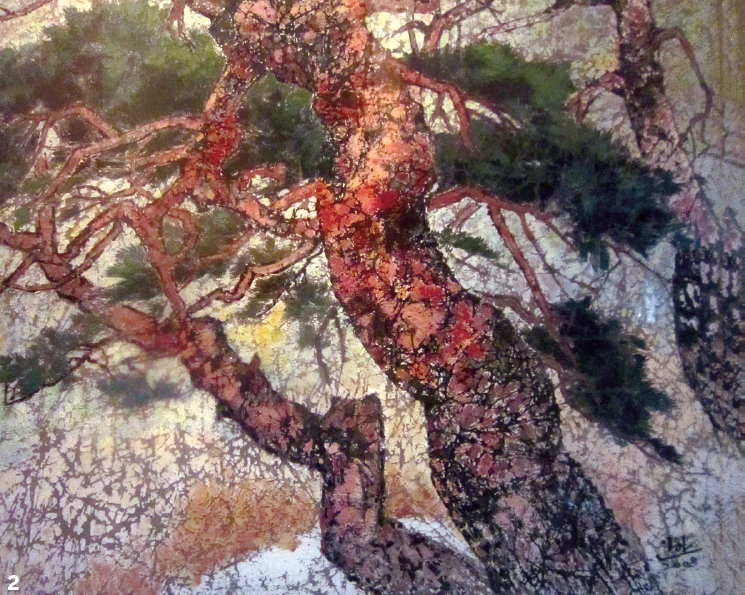‘인왕산 소나무’는 그의 화실에서 떼어온 작품이다. 인왕산 기슭에서 지금도 자라고 있는 소나무 그루를 광목 위에 옮긴 그의 대표 작품이다. ‘자신의 작품을 좋아하고 화실을 찾아간 고마움에 다섯 분납하도록 편의’를 주어 위층으로 오르는 계단 벽에 걸고 매일 바라보며 소나무의 정령(精靈)을 받고 있다.