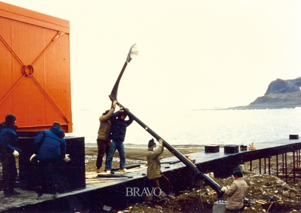 ▲국내 최초의 남극기지 월동연구대인 1차 월동대의 모습. 해양연구소 소속 연구인원 7명과 기지 건설에 참여했