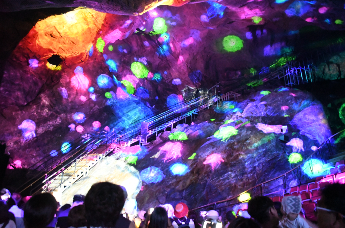 빛의 아름다움을 감상하며 걷다보면 '동굴 예술의 전당'이 나온다. 이곳은 공연을 할 수 있을 정도로 굉장히 큰 공간이다. 전면에는 무대가 설치되어 있고 맞은편에는 350명 정도의 관객을 수용할 수 있는 고정된 객석이 갖추어져 있다. 이곳에서는 다양한 장르의 공연이 펼쳐지고 있는데, 동굴의 천장과 벽을 배경으로 펼쳐지는 미디어파사드 쇼는 빛이 주는 아름다운 감동을 오롯이 느낄 수 있게 해준다.