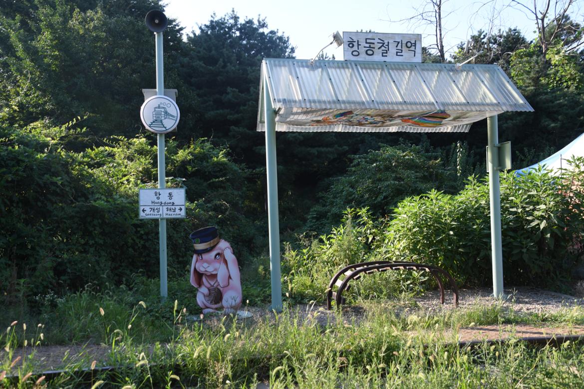 저 멀리 하나의 점을 향해 시원스럽게 내달리는 레일을 바라보고 있노라니 가슴이 확 트이는 것 같은 시원함이 느껴진다. 쪽문 건너편으로 '항동역'이라는 간판이 눈에 띈다. 거칠고 투박했지만 시골에 있는 어느 간이역을 연상케 하는 풍경이다. 가을이 되면 철길 주변을 뒤덮는 코스모스가 장관이라고 지나가던 한 분이 귀띔을 해 주신다. 이 또한 기대되는 풍경이 아닐 수 없다.
