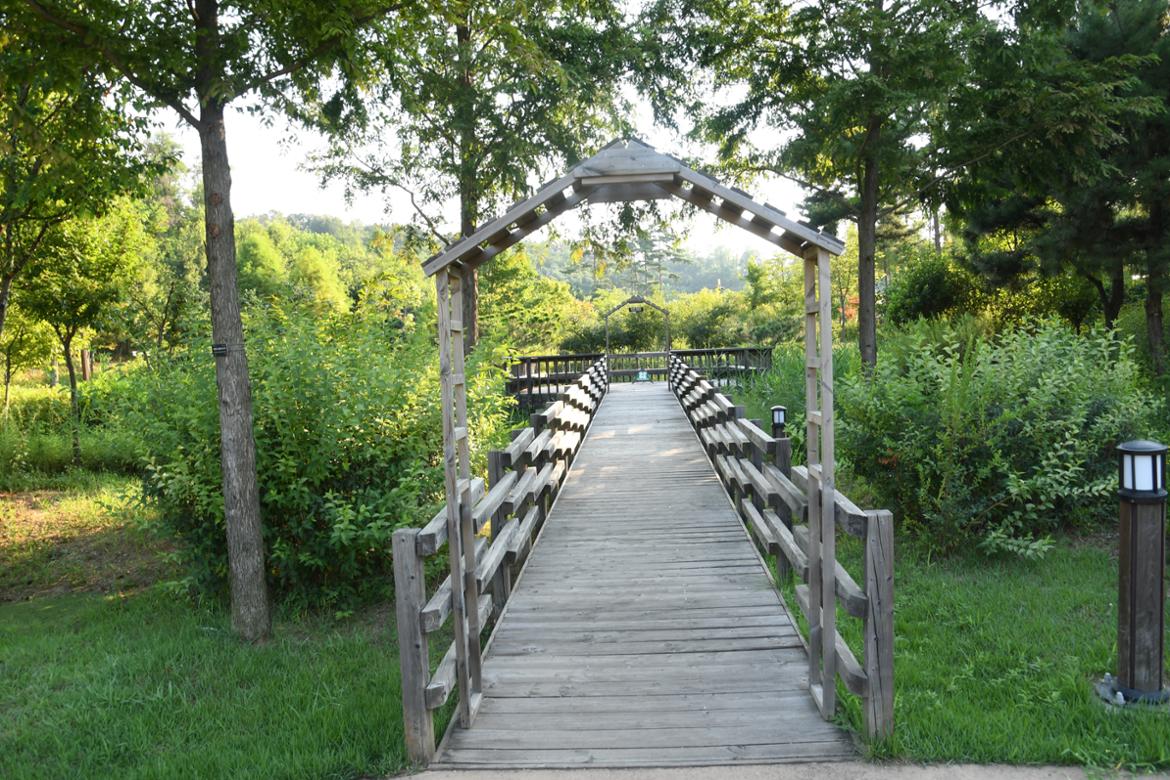 수생식물원과 습지식물원 그리고 참여정원을 지나노라면 동화 속에나 등장할 것 같은 예쁘장한 원두막이 여럿 보인다. 숲속의 원두막은 관람객의 지친 걸음을 잠시 쉬어갈 수 있게 해주는 고마운 공간이다. 이곳에 자리를 잡고 앉아 부채질을 하며 더위를 식히는 사람들의 얼굴에선 편안함과 여유로움을 찾아볼 수 있다. 잠시 쉬어갈 수 있도록 만들어진 휴식공간은 원두막 이외에도 관람로 주변에 많이 마련되어 있다. 예쁜 돌을 배치해 만든 공간도 있고, 벤치도 설치되어 있어 관람객이 불편하지 않도록 노력한 흔적을 쉽게 찾아볼 수 있다.