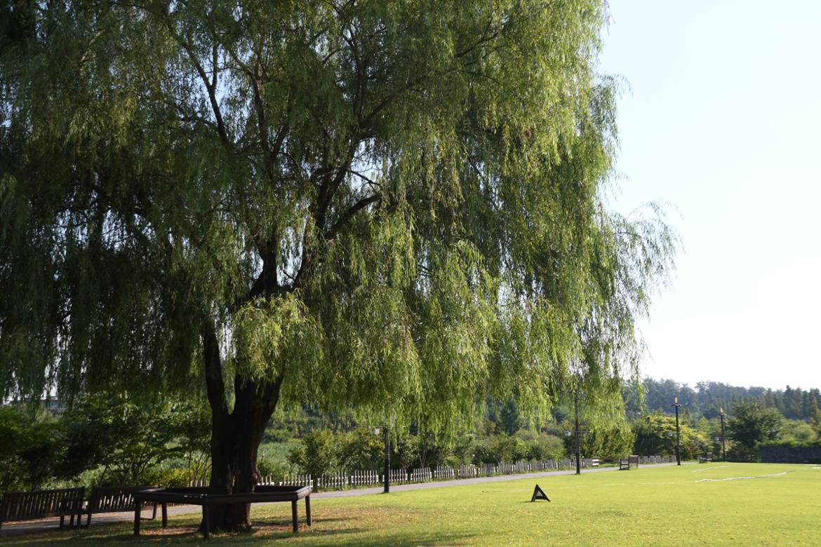 수목원 정문에 들어서면 시원스럽게 조성된 잔디광장을 마주하게 된다. 평소에는 잔디관리를 위해 출입을 금하고 있지만, 종종 이곳에서 행사들이 진행되어 출입이 허용되기도 한다. 잔디광장 모퉁이에는 아름드리 버드나무가 우뚝 서서 내려다보고 있는데, 그 푸름이 마치 푸른수목원의 마스코트처럼 느껴진다.