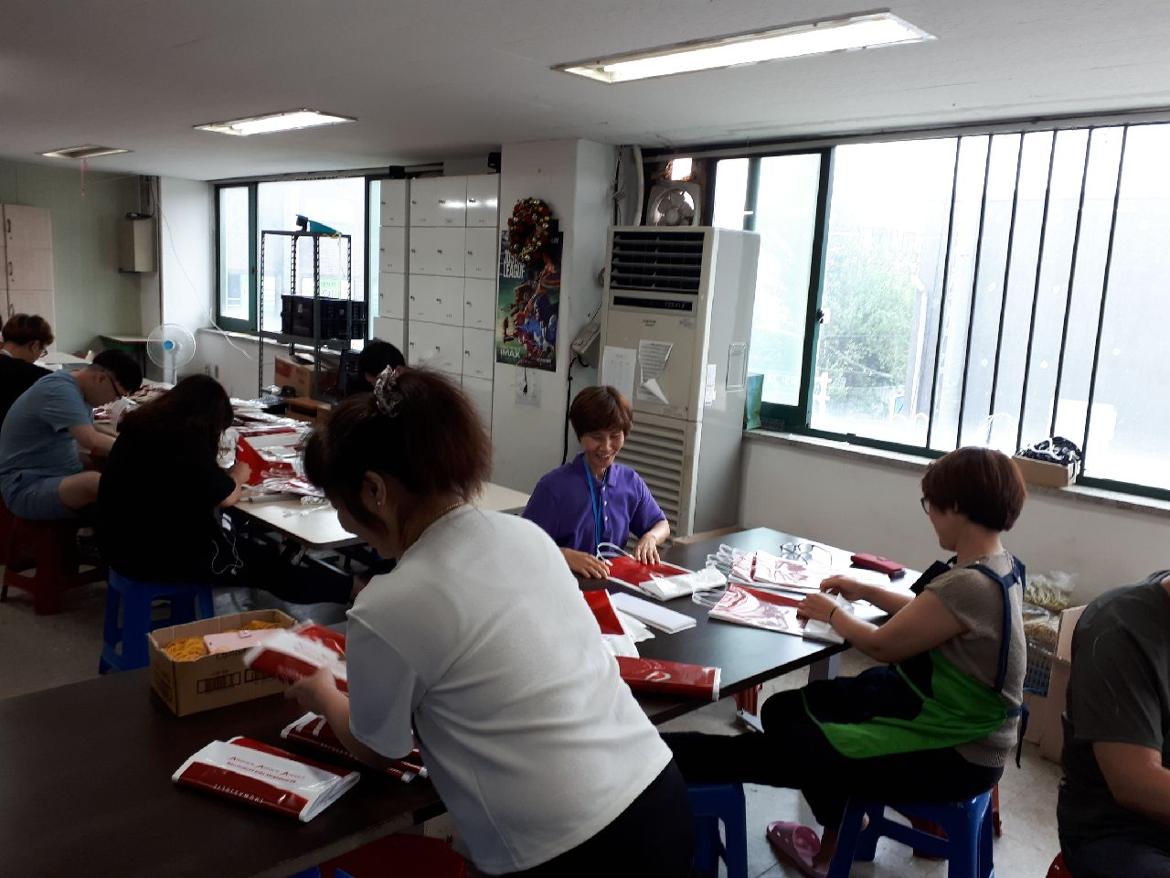 (장애인을 고용하고 이들의 경제적 자립을 돕는 사회적 기업의 일원이 되어, 고용인과 근로자의 업무를 지원하는 것이군요. 한 공간에 머물면서 필요한 부분을 직접 돕고, 근로자의 업무 환경을 개선하시고.) 네, 맞습니다. 봉투 작업 생산량을 높이기 위한 지원 뿐 아니라, 발달장애청년들이 경제활동과 사회생활을 영위하는 데에 필요한 전반적인 도움을 준다고 할 수 있습니다.