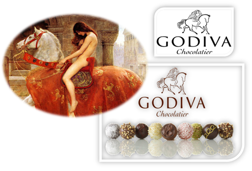 그녀의 이름을 제품 브랜드 명으로 사용한 기업들도 있는데, 가장 대표적인 업체가 말을 탄 고다이버의 이미지를 로고로 사용하고 있는 고급 초콜릿 제조업체 'Godiva Chocolatier'이다. 고다이버 전설이 유럽은 물론 미국에도 널리 알려지게 되고 고급스러운 느낌을 주기 위해 1958년부터 고다이버를 브랜드로 택했다고 한다. 1926년 벨기에에서 출발해 궁중에 납품하는 최고급 초콜릿 브랜드였으나, 2007년엔 터키 자본으로 넘어갔다. 전 세계 1만여 개의 판매 업소(미국에만 450개)를 두고 있는 초콜릿 재벌이기도 하다. 우스갯소리로 당이 떨어지면 즐기던 고디바 초콜릿이 이제 새로운 감흥으로 다가온다.