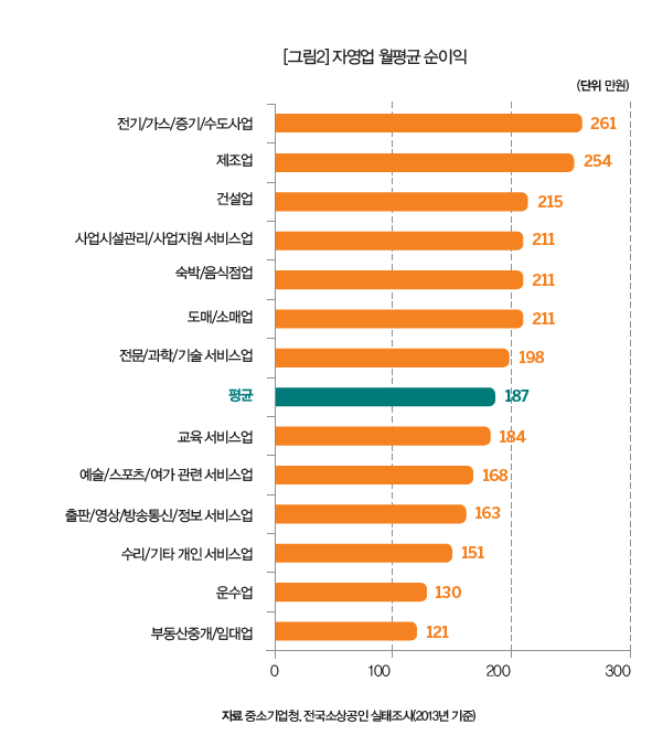 두 번째 소득원은 ‘사업소득’이다. 많은 사람들이 퇴직 후 창업의 꿈을 꾼다. 필자도 그렇다. 그러나 회사가 전쟁터라면 밖은 지옥이라는 말처럼 사업을 시작하더라도 원하는 결과를 이끌어내기는 쉽지 않다. 통계청 자료에 따르면 자영업 생존율은 창업 후 2년 48%, 5년 27%에 불과한 것으로 나타났다. 조급한 마음에 서두르다 충분한 준비 과정을 거치지도 않고, 자금 부족 탓에 규모의 영세성을 벗어나지 못하고, 수익성마저 낮기 때문이다. 이처럼 은퇴 후 안정적인 소득 확보를 위해 시작하는 사업과 창업은 생각만큼 녹록지 않다. 자영업자의 월평균 순이익은 187만원에 불과한 실정이다.
