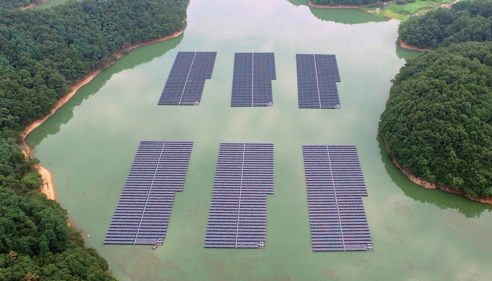 자연환경 파괴를 최소화하기 위해 폐업한 골프장(上)이나 공유수면(下)을 활용하는 등의 다양한 방안이 검토되고있다.(사진제공 LG CNS)