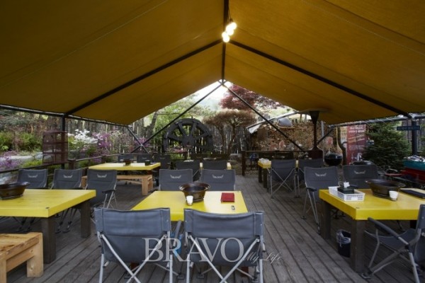 저녁 시간에 가면 야외 정원에 모닥불이 빨갛게 피어오르고 연못 분수에 조명이 들어와 별빛처럼 반짝인다. 일반적인 식당은 실내 테이블에서 고기를 먹고, 야외로 나와 커피나 차를 마시는 게 대부분인데, 이곳은 그 반대라 생각하면 된다. 고기는 야외 테이블에서, 디저트는 실내에서 즐길 수 있다.