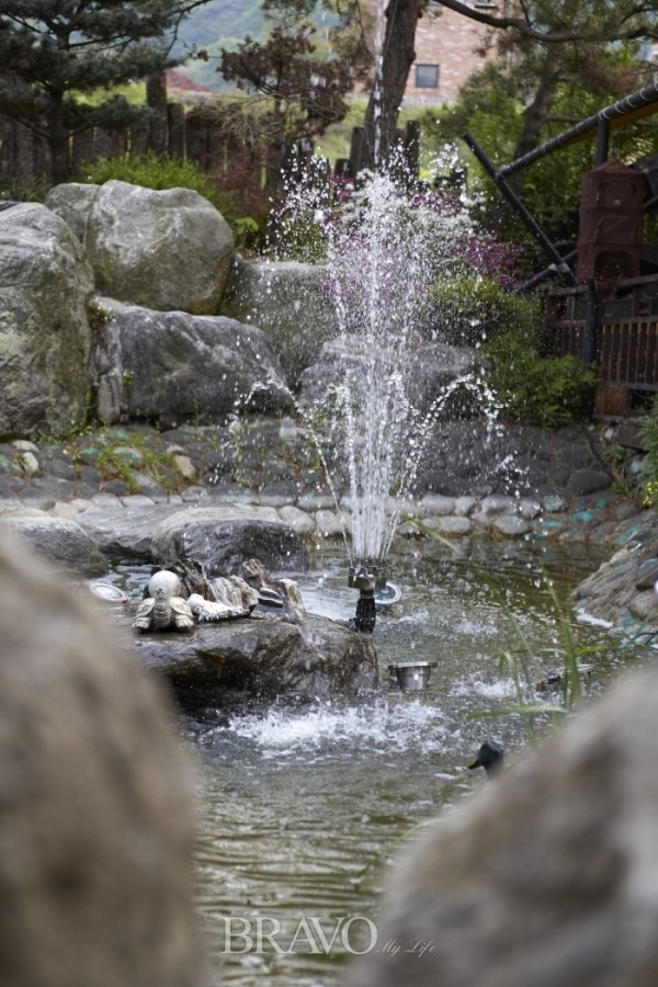 그가 가장 중요하게 생각하는 것은 ‘소리’다. 바람소리, 물소리, 음악소리 이 세 가지는 꼭 넣고 싶었다고 한다. 본래 이곳은 라이브카페였는데, 정원을 개조하며 연못 분수를 만들었다. 그렇게 바람소리와 어우러진 물소리를 낼 수 있었고, 연못 안 개구리 울음소리도 덤으로 얻었다. 또 가요 대신 잔잔한 재즈와 팝 음악이 흘러나오도록 했다. 식사 중 음악이 거슬리지 않게 ‘리스닝(listening, 듣는 것)’이 아닌 ‘히어링(hearing, 들리는 것)’을 의도한 것이라고.