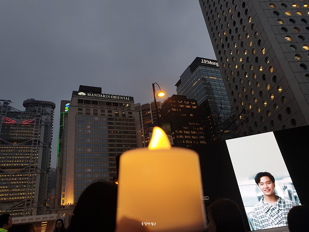 홍콩 도착한 다음 날, 제일 먼저 방문한 곳이 침사추이 문화센터 광장입니다. 아직 이른시간이지만 추모 열기가 후끈 달아올라 있었습니다.