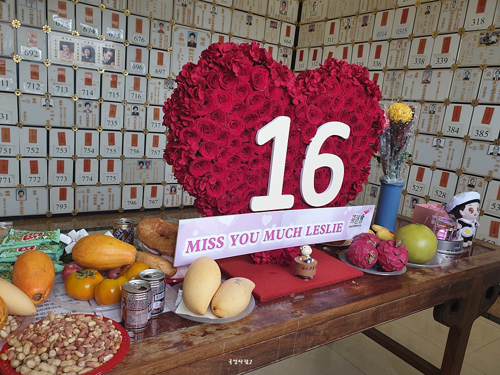 오전 11시, 장국영 팬들이 모두 홍콩 외곽인 사틴 보복산에 집결합니다. 사틴 보복산은 거대한 산 하나를 납골묘로 사용하는 곳으로, 장국영의 위패가 모셔져 있어 그의 전 매니저 진숙분이 주관하는 추모제가 이곳에서 열립니다. 장국영의 위패가 있는 곳은 보복산 보선당 965호실 695번입니다.