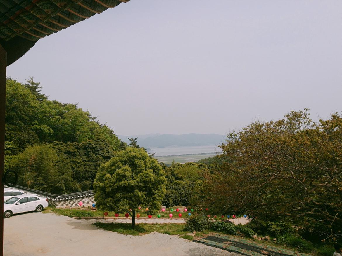 만경루에서 바라본 풍경, 멀리 강진만과 바다가 보인다.