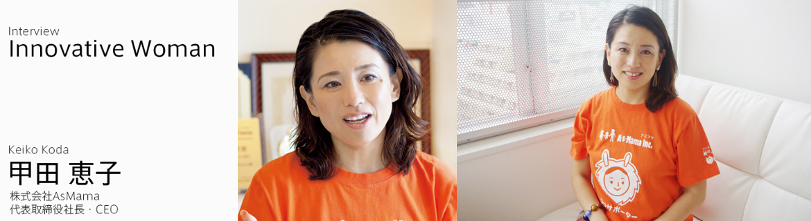AsMama를 창업한 고다 케이코(甲田 恵子, 42) 씨는 많은 여성들이 육아의 부담을 느낀다는 점에 착안해 사업을 시작했다. “곤란할 때 의지할 수 있는 사람이 달려와 준다든가, 사회공헌적인 일을 하고 돈을 벌 수 있는 것이 당연한 세상을 만들고 싶다.”
