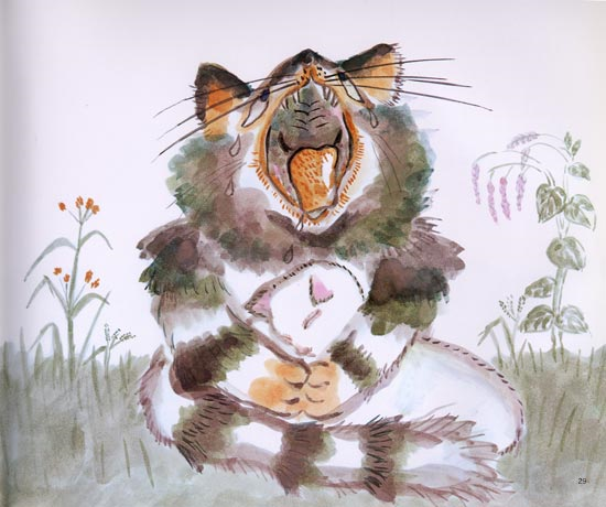 그리고 얼룩 고양이는 백만 년 만에 처음으로 울었습니다. 살면서 한 번도 울어본 적이 없는 얼룩 고양이는 밤이 되고 아침이 되도록 울고 또 울고, 다음 날도 그 다음 날도 울고 또 울고 울었습니다.