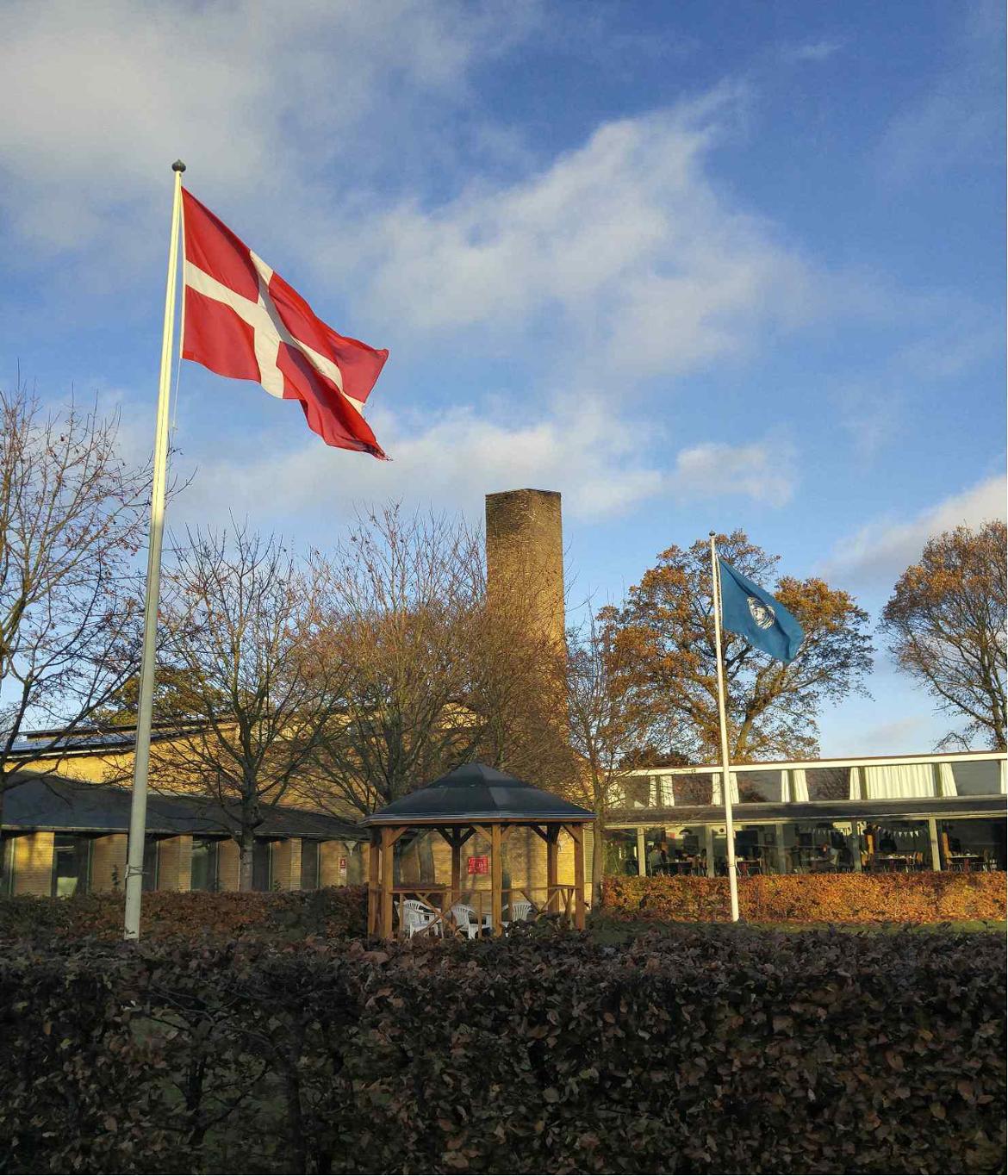 덴마크 국기와 유엔기가 함께 걸려 있는 IPC 전경