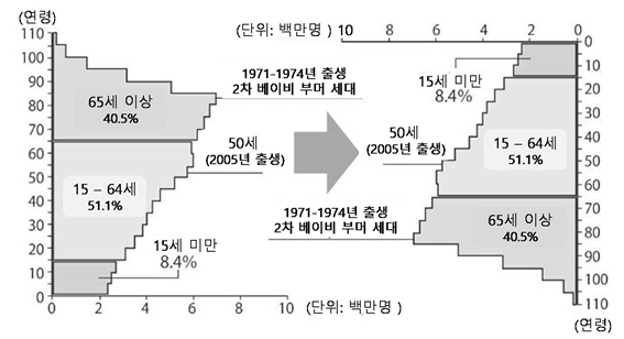 아래쪽에 있는 다수의 시니어 세대가 위쪽에 있는 소수의 젊은 세대를 안정적으로 떠받쳐주는 사회구조가 되는 발상의 전환을 보여주고 있다.