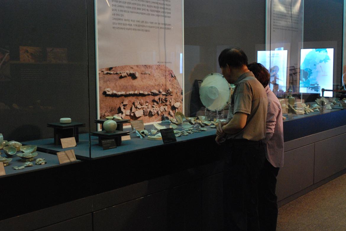 청자박물관 내부를 살펴보는 관람객