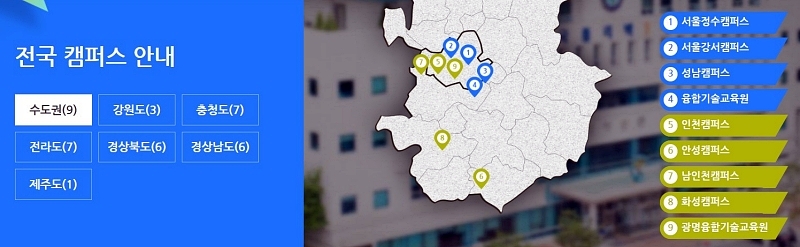 서울 지역에는 2곳, 수도권 지역으로 범위를 넓히면 9곳의 캠퍼스가 있다.