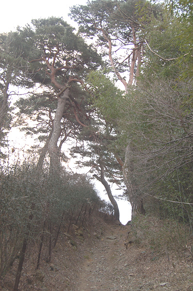 지리산 둘레길에서 흔히 볼 수 있는 풍경. 둘레길을 걷는 사람들에게 이정표가 될 만한 나무들이 이 길에서 자주 볼 수 있다