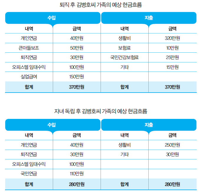 ①퇴직 후, 그리고 자녀 독립 후 예상현금 흐름을 알고 싶다.