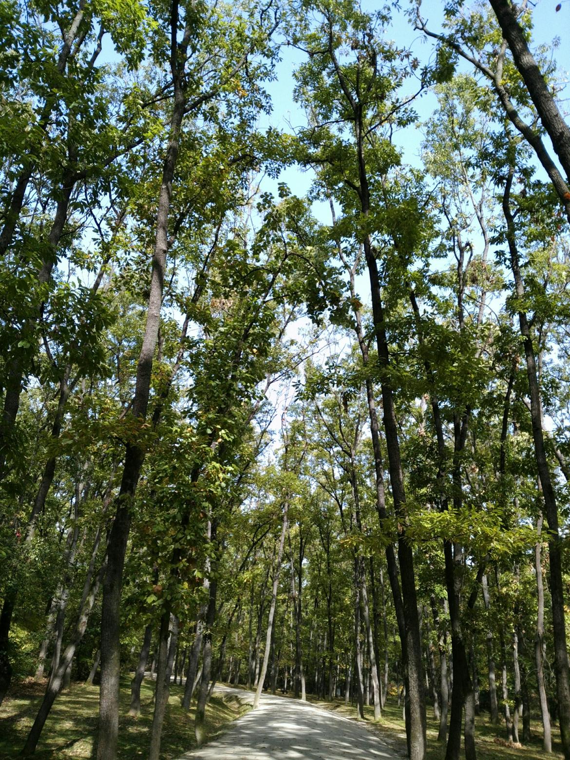 융·건릉에 조성된 참나무 숲, 나무들이 하늘을 향해 시원스럽게 뻗어 있다.