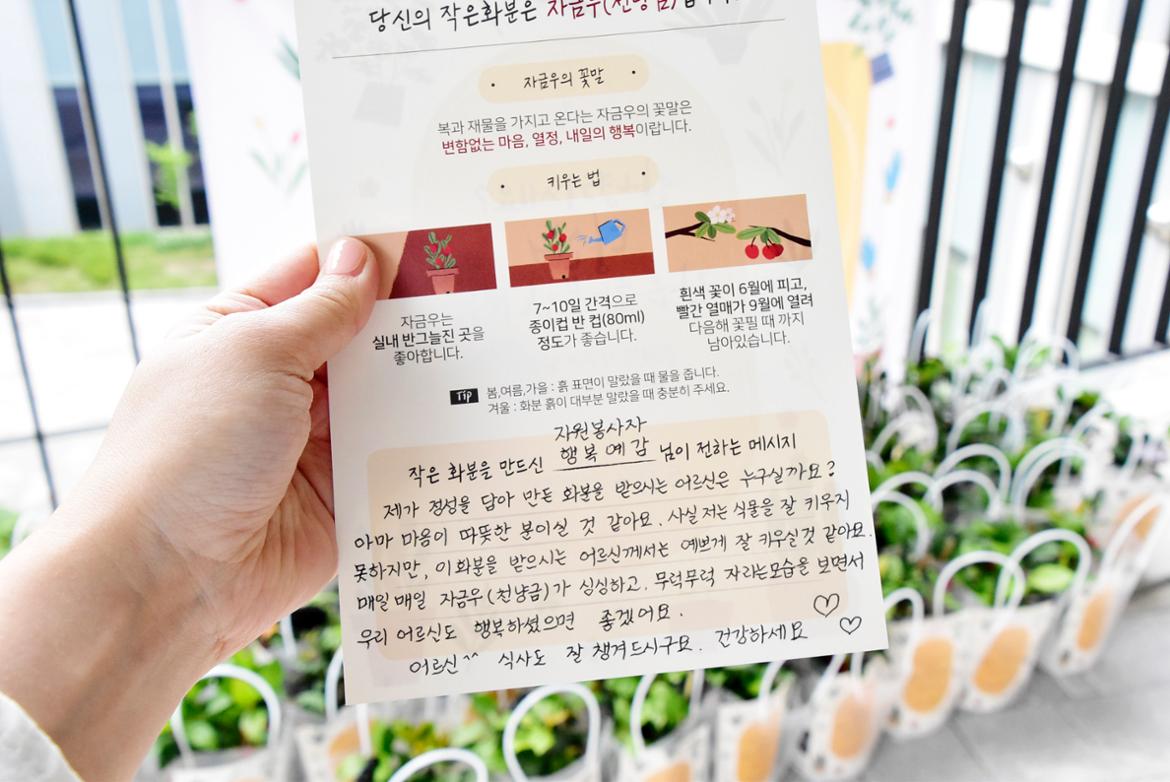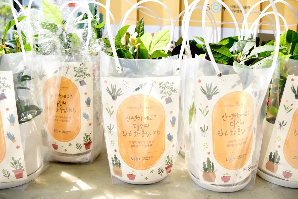 화분과 함께 전했던 50+의 따뜻한 메시지와 밝은 기운들. 기뻐하시는 홀몸어르신들 덕분에 보람차고 행복한 봉사 현장이었습니다. 50+자원봉사자 여러분의 소중한 마음! 온전히 전해드렸으니 걱정마세요. :)