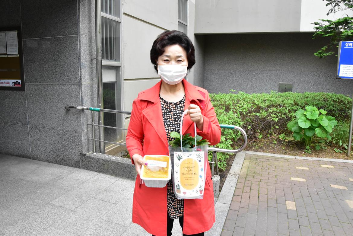 구로구 관내 동주민센터에 있는 ‘자원봉사캠프’는 홀몸어르신께 2주마다 반찬 배달을 하며, 말동무가 되어드리고 있었는데요. 이때 작은화분을 함께 나눠드리는 일정이었습니다. 남부캠퍼스는 자타칭 구로구 자원봉사계의 ‘대모’라고 하시는 김의순 자원봉사캠프장님과 함께 봉사에 동행하였습니다. (감사합니다!!)