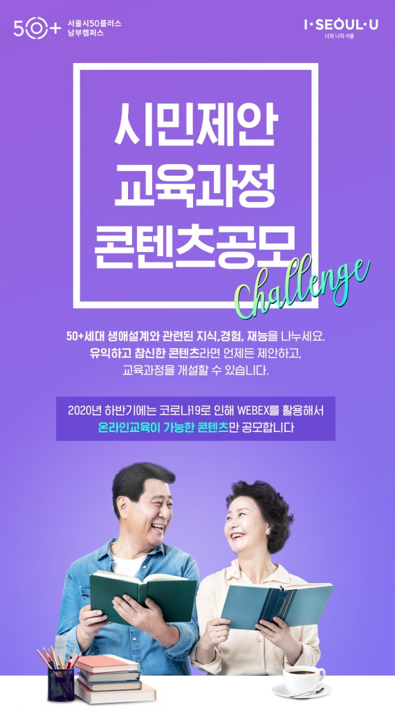 공모전을 통해 내가 공부하고 싶은 프로그램을 개설하는 건 어떨까? ‘시민제안 교육과정 콘텐츠’ 공모전을 활용하면 된다. ‘시민제안 교육과정 콘텐츠’ 공모전은 50+세대 생애설계와 관련된 지식, 재능, 경험을 나눈다는 취지이며 유익하고 참신한 콘텐츠라면 제안할 수 있고, 교육과정을 개설할 수 있다. 지원자격은 개인의 경우, 최근 2년 내 서울시50플러스 남부캠퍼스와 서부캠퍼스, 중부캠퍼스 교육과정 수강 참여자(일회성 강의는 제외) 및 커뮤니티 활동 참가자라야 한다. 커뮤니티의 경우, 3곳 캠퍼스 커뮤니티플러스/커뮤니티프로젝트사업 참가팀이 해당. 참가신청은 온라인 접수해야 하고, 참가신청서는 서울시50플러스포털에서 다운로드 후 작성해 제출하면 된다. 상시신청을 받는데, 올해의 경우 11월 11일 최종 마감한다. 사업예산 소진 시 조기 마감될 수 있다.