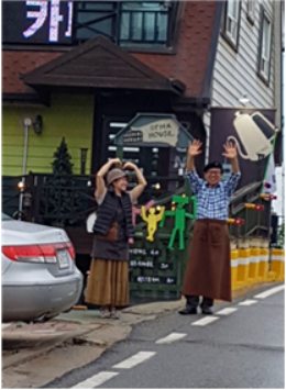 빗방울이 더 굵어지니 한 잔의 차가 그리워진다. 버스를 타고 신도에 들어와 로마카페의 테이블에 둘러앉았다. 아직 차도 주문 안했는데 카페 주인 부부의 모습을 보니 피곤한 우리의 몸이 스르르 녹는다. 은퇴하고 이 섬에 예쁜 카페를 차리셨다고 한다. 남미와 아프리카에서 건너온 커피 원두의 향이 우리 코끝을 간지럽게 한다.