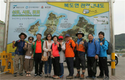 출발하는 날은 아침부터 서둘러 공항철도를 탔다. 오전 일찍 운서 역에서 모이기로 했기 때문이다. 스마트 폰 덕분에 환승역인 공덕 역에서 하나 둘 씩 합류하여 지하철 3번 칸에 모여들었다. 이렇게 모인 비담채 회원들은 영종도 삼목항에서 배를 타고 ‘신도’ 섬에 내렸다. 신도는 강화도 남쪽 해상에 있는 세 개의 섬 중 하나이다. 신도(信島)’, ‘시도(矢島)’, ‘모도(茅島)’를 합하여 ‘신시모도’라 하는데 세 개의 섬들이 아주 가까이 있어 삼형제의 섬이라고도 부른다.