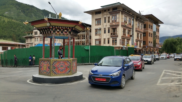 부탄에 없는 것을 소개할 때 매번 등장하는 것이 신호등이다. 팀푸에는 일본과 한국의 소형 자동차들이 많다.