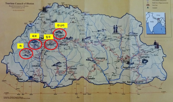 부탄은 히말라야 산맥의 동남쪽에 위치한 면적 39,394 ㎢(한반도의 약 1/5)의 작은 나라이다. 부탄으로 입국하기 위해서는 반드시 부탄 국영 항공인 드룩 에어(Druk Air)를 타야 한다. 이 비행기는 태국의 방콕, 싱가포르, 인도의 델리, 네팔의 카트만두 등지에서만 탈 수 있다. 즉 우리나라에서 출발하는 직항은 없다.
