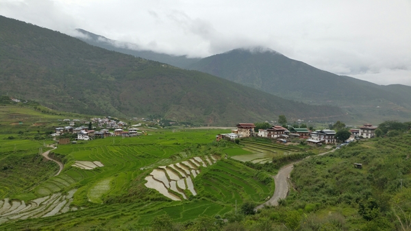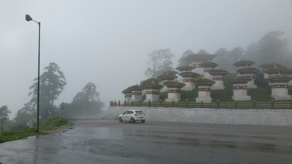 오락가락 하는 빗속에서 부탄 여행 이틀이 지나가고 있다. 이곳은 우기이지만 비는 대부분 밤에 내리고 낮에는 가는 빗방울만 떨어진다. 간혹 비가 그치면서 우리들의 여행을 즐겁게 해주기도 하는데 피부에 와 닿는 공기가 서늘해서 좋다. 서울은 지금 장맛비가 쏟아진다던데...내일은 파란 하늘을 볼 수 있을까?