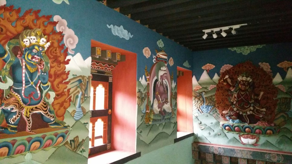 사원의 입구에는 우리나라의 사천왕에 해당하는 분들의 벽화가 그려져 있는데, 호랑이가죽 옷을 입고 뱀을 목에 걸었으며 해골을 머리에 꽂고 있다. 그런데 이 모습이 무섭기도 하지만 피식~ 웃음이 나오는 건 왜일까?