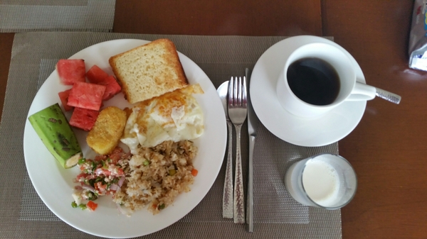 호텔 조식은 우리들 입맛에 잘 맞는 소박하고 정성이 가득한 음식이다. 종류는 적었지만 해외에서 먹은 호텔 조식 중 가장 입맛에 맞는 최고의 음식이었다. 뜨끈한 우유는 몸을 스르르 녹이고 속도 편안하게 해 주었다. 쌀, 감자, 콩, 당근, 바나나 등 채식 위주인데, 닭고기나 달걀 후라이가 곁들여지기도 한다. 상처 투성이인 바나나가 너무 맛있다. 노란 바나나만 먹어보았는데 녹색의 로컬 바나나를 보고 있노라니 농약과 화학비료를 사용하지 않는 부탄이 부러웠다.