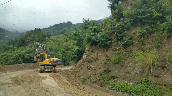 고개를 넘어가니 산사태로 막힌 길을 포크레인이 정비하고 있다. 순간 아찔하였는데 천만 다행이다.