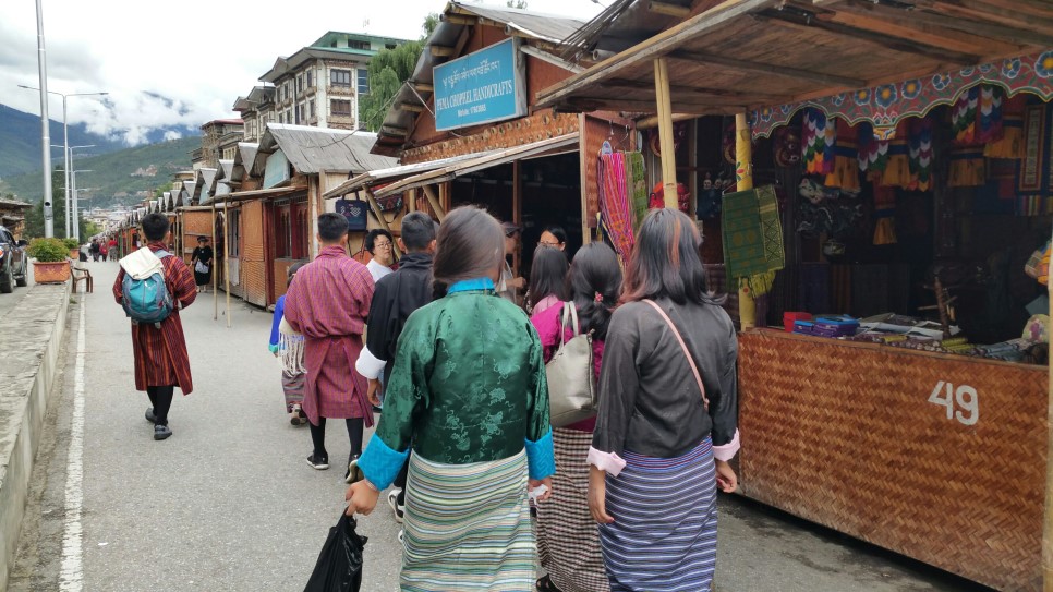 팀푸에서 제일 먼저 방문한 곳은 공예학교이다. 이곳에서는 베틀을 이용하여 손으로 옷감을 짜는 모습을 볼 수 있는데 옷과 옷감도 판매한다. 부탄은 공장이 매우 적다. 전통의상은 대부분 손으로 짠 옷감으로 만든다.