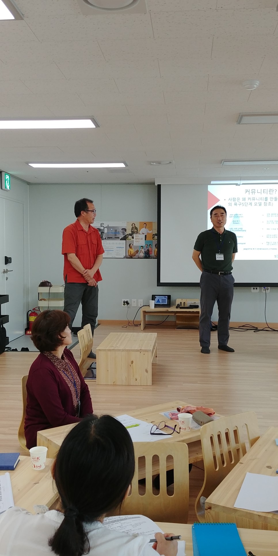 강사는 커뮤니티를 머슬로우의 욕구 5단계론을 예를 들어가며 설명중이다.