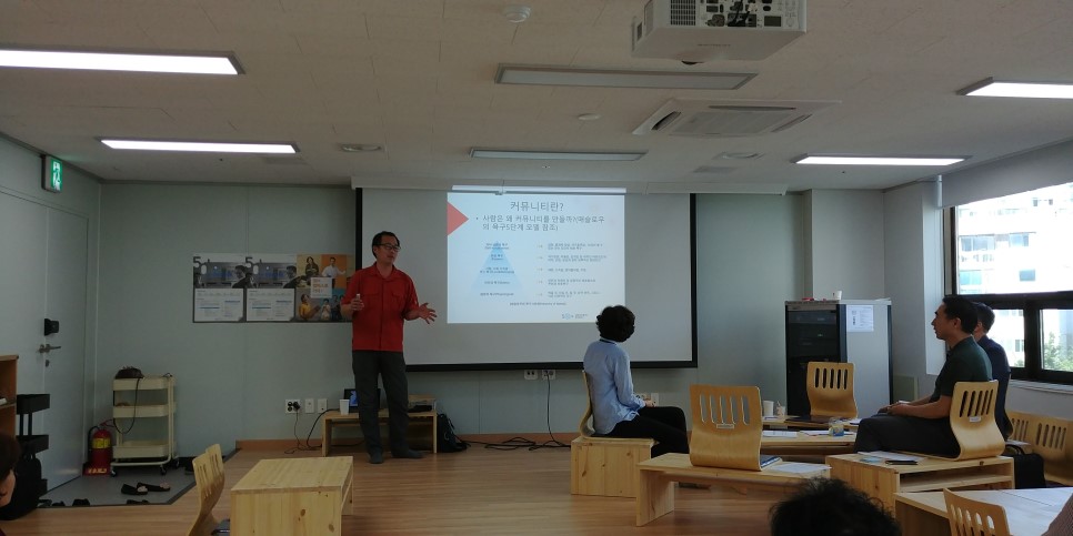 그러면서 머슬로우의 욕구 5단계론을 예를 들어가며 커뮤니티의 설립 동기에 대하여 비교 설명을 하기 시작한다.
