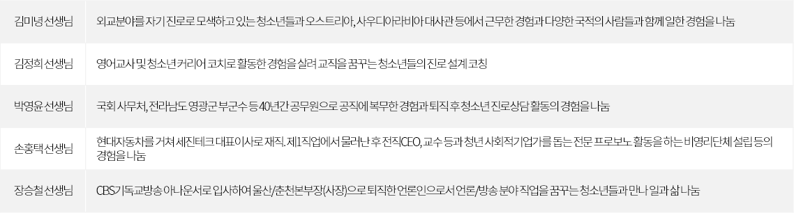 청소년들은 진로사람책을 통해 직업을 정보가 아닌 삶으로 만납니다.