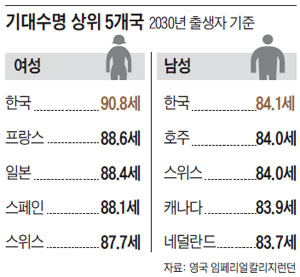 특히 여자아이의 기대수명이 90살이 넘는데요.