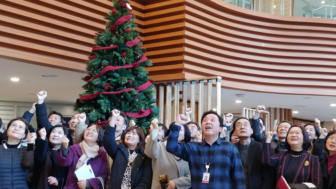 집행부는 ‘다사다난과 위기극복’을 2018 활동 리뷰 키워드로 삼으며, 케익과 촛불로 서로 격려를 나눈다. 2018년 컨설턴트 활동을 되돌아보는 영상에 곁들어진 이종문 매니저의 소금 연주는 유종의 미를 고조시킨다. 67명의 컨설턴트의 재능과 발전 가능성의 확인이 일자리지원실 매니저로써 가장 큰 보람이었다는 말을 전한다. 김정아 PM의 고백과 아쉬움, 가능성을 열어주심에 진심으로 감사하다는 관장님의 멘트를 끝으로 50+컨설턴트 전체모임을 마감한다.
