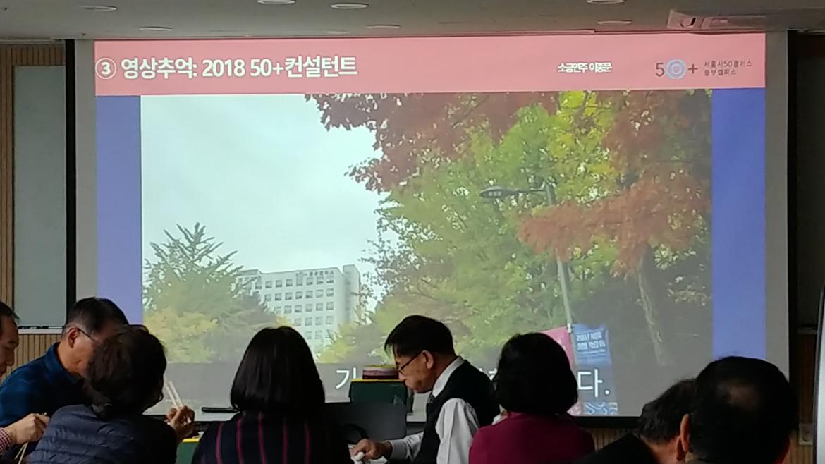 먼저 서대문50플러스센터에서 활동한 팀의 발표를 선두로 약 2시간 동안 진행되었다. 올해 처음 활동한 관계로(서대문50플러스센터는 2018년 7월에 개관한 신규기관) 상담 프로세스가 아직은 미비하다고 한다. 내담자 대다수가 1회 상담에 그치고, 일자리에 관심이 집중 되어 있다. 직업상담소로 착각하여 오시는 경우도 있었다고 한다.