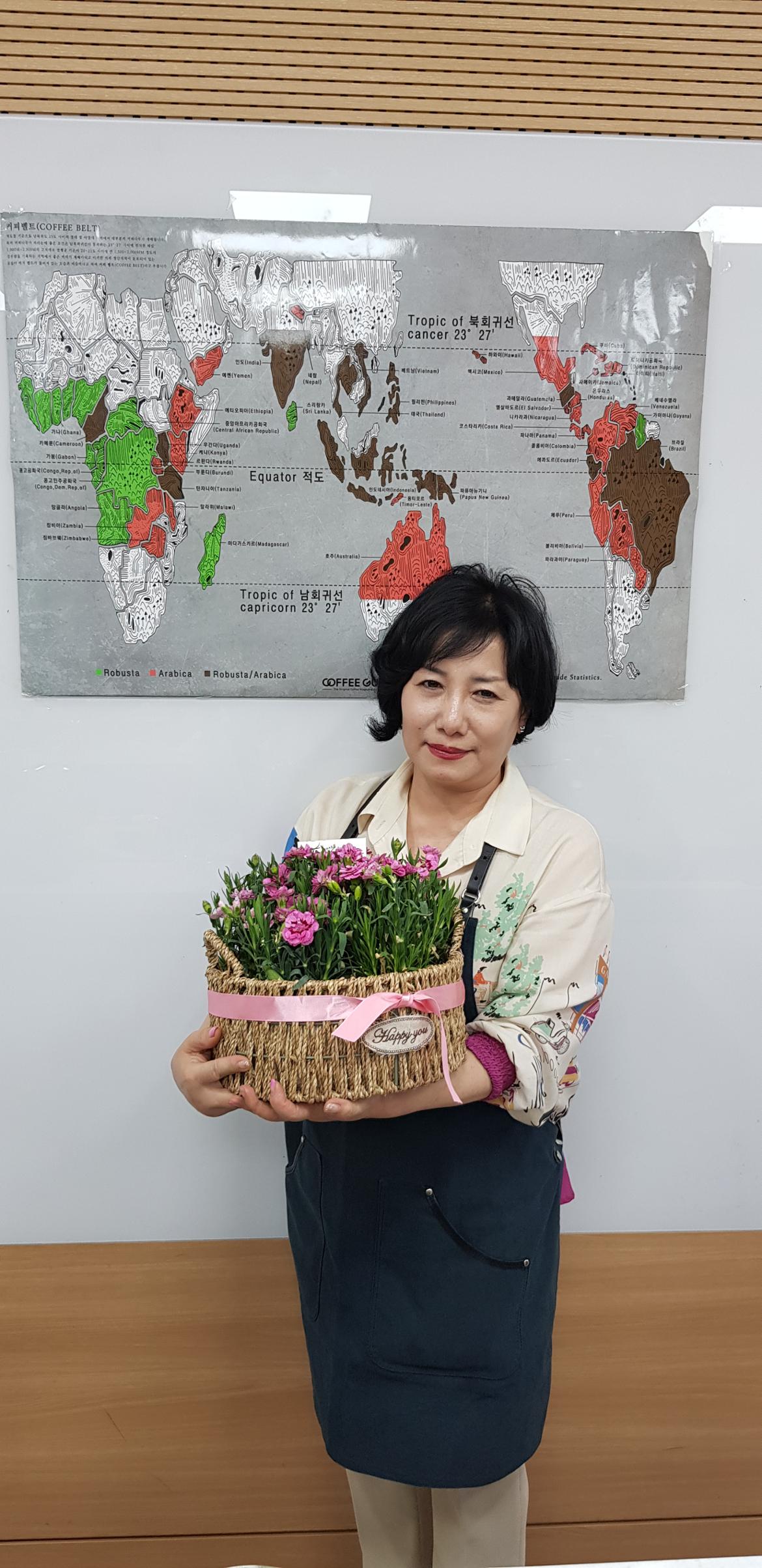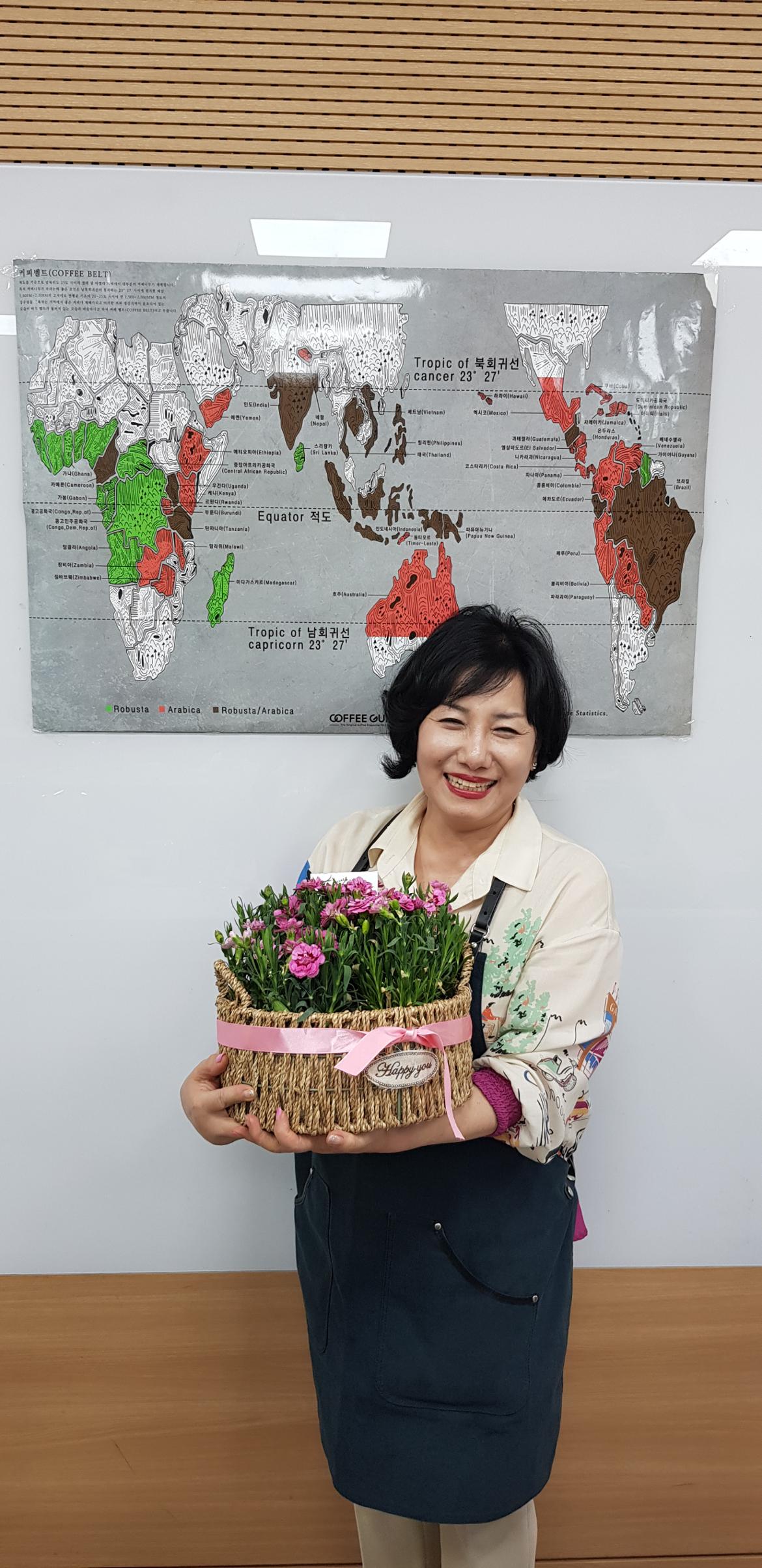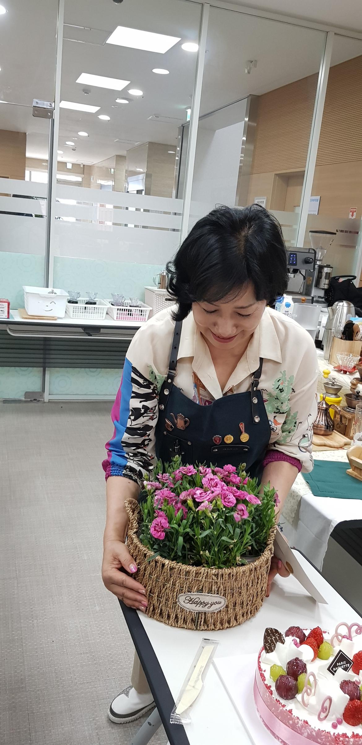 꽃 바구니 카네이션을 공감시간에 짠~~드리기 위해 선생님 눈에 안 띄게 공수작전을 하느라 회원님들 땀~~~좀 흘렸지요 ㅎㅎㅎ